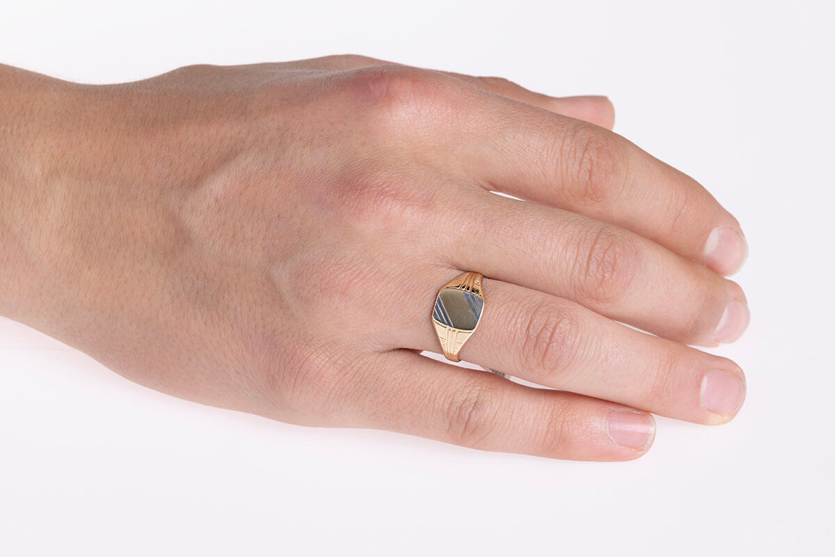Valeron je elegantní pánský pečetní prsten vyrobený v kombinaci žlutého a bílého 14kt zlata (585/1000), který v sobě nese sílu tradice i nadčasový styl. Dominantní plocha v hladkém lesku je zdobená diagonálními liniemi z bílého zlata, které dodávají prstenu moderní charakter. Boky jsou lehce gravírované, což podtrhuje jeho precizní zpracování a osobitý vzhled. V minulosti byl pečetní prsten symbolem moci a identity – používali jej faraoni, králové, rytíři i šlechtici jako osobní podpis. Otisk do pečetního vosku měl právní platnost a chránil důležité dokumenty. Každý prsten byl unikátní, nesl erb, znak nebo monogram nositele a dědil se po generace. Jeho nošení vyjadřovalo příslušnost k rodu, postavení i odpovědnost. Dnes se pečetní prsten vrací jako stylový šperk pro muže, kteří ctí tradici a eleganci. Valeron je ideální volbou pro každodenní nošení i slavnostní příležitosti – stane se výrazným symbolem osobnosti, příběhu a hodnot, které přetrvávají. Materiál: Žluté zlato Au 585/1000 (14kt), Bílé zlato Au 585/1000 (14kt) Ryzost: 585/1000 Povrch je leštěný. Design: diagonální linie z bílého zlata, jemné boční gravírování Styl: pánský, tradiční, reprezentativní Šířka prstenu: 10,8 mm. Pečetní prsten se v minulosti tradičně nosil na malíčku – v kontinentální Evropě nejčastěji na pravé ruce. V současnosti se pravidla nošení uvolnila – mnoho mužů nosí pečetní prsten na prsteníčku, prostředníčku nebo i ukazováčku, podle osobního stylu. Výběr prstu je tedy čistě na Vás – nejdůležitější je, aby prsten odrážel Vaši osobnost. Prsten má českou puncovní značku pro ryzost zlata: 585.