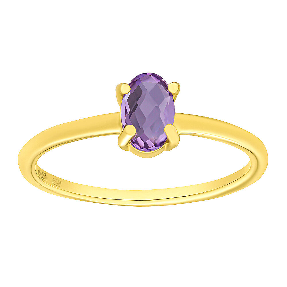 Prsten Jubilee spojuje teplý odstín žlutého 14kt zlata s oválným přírodním ametystem o velikosti 6 x 4 mm, jehož něžně fialová barva okamžitě upoutá pozornost. Kámen je precizně broušený, takže při každém pohybu vytváří nádherné odlesky a dodává šperku hloubku i výraznou eleganci. Jemná obroučka nechává vyniknout samotnému ametystu, díky čemuž prsten působí subtilně, moderně a nadčasově. Jubilee je ideální volbou pro ženy, které milují minimalistický styl s luxusním nádechem. Ametyst je drahokam známý svou charakteristickou fialovou barvou, která může sahat od světle levandulového odstínu až po hlubokou purpurovou. Je oblíbený pro svůj elegantní vzhled a výraznou barvu, která šperkům dodává noblesu. Každý přírodní kámen je jedinečný svojí strukturou a odstínem, a proto přiložená fotografie nemusí odpovídat skutečnosti. Materiál: Žluté zlato Au 585/1000 (14 kt) Kámen: přírodní ametyst Velikost kamene: 6 x 4 mm