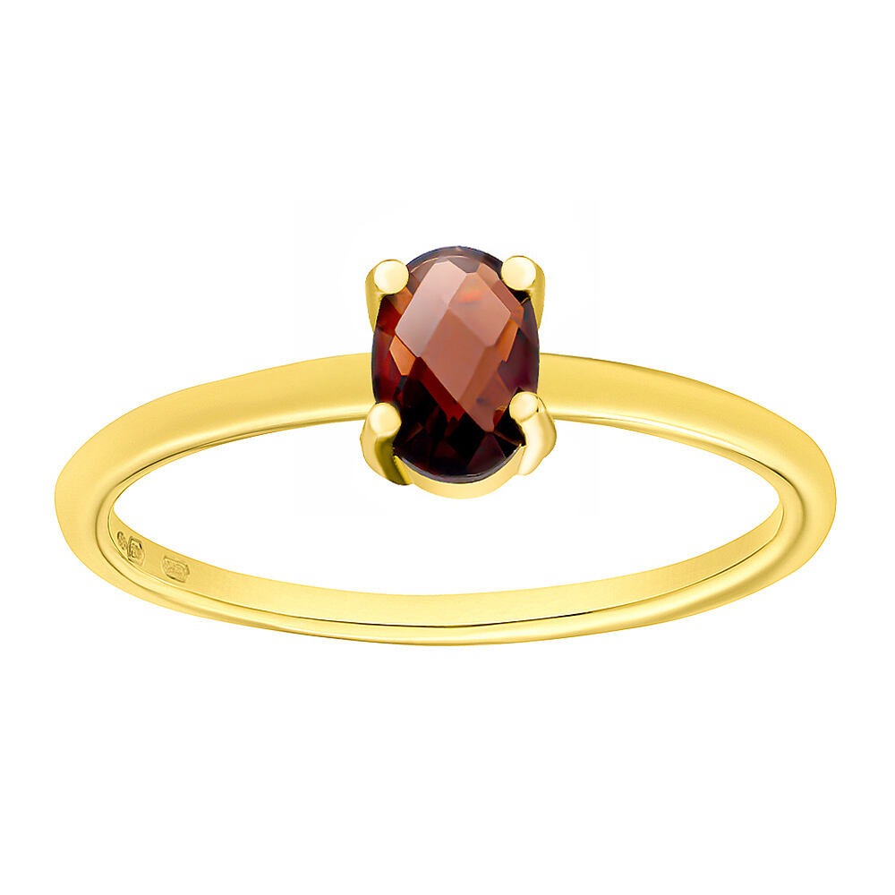 Prsten Jubilee spojuje teplý odstín žlutého 14kt zlata s oválným přírodním granátem o velikosti 6 x 4 mm, jehož sytě červená barva okamžitě upoutá pozornost. Kámen je precizně broušený, takže při každém pohybu vytváří nádherné odlesky a dodává šperku hloubku i výraznou eleganci. Jemná obroučka nechává vyniknout samotnému granátu, díky čemuž prsten působí subtilně, moderně a nadčasově. Jubilee je ideální volbou pro ženy, které milují minimalistický styl s luxusním nádechem. Granát je kámen známý svou hlubokou červenou barvou a výrazným leskem. Ve šperkařství je oblíbený pro svou eleganci a schopnost dodat šperkům luxusní a výrazný charakter. Každý přírodní kámen je jedinečný svojí strukturou a odstínem, a proto přiložená fotografie nemusí odpovídat skutečnosti. Materiál: Žluté zlato Au 585/1000 (14 kt) Kámen: přírodní granát Velikost kamene: 6 x 4 mm