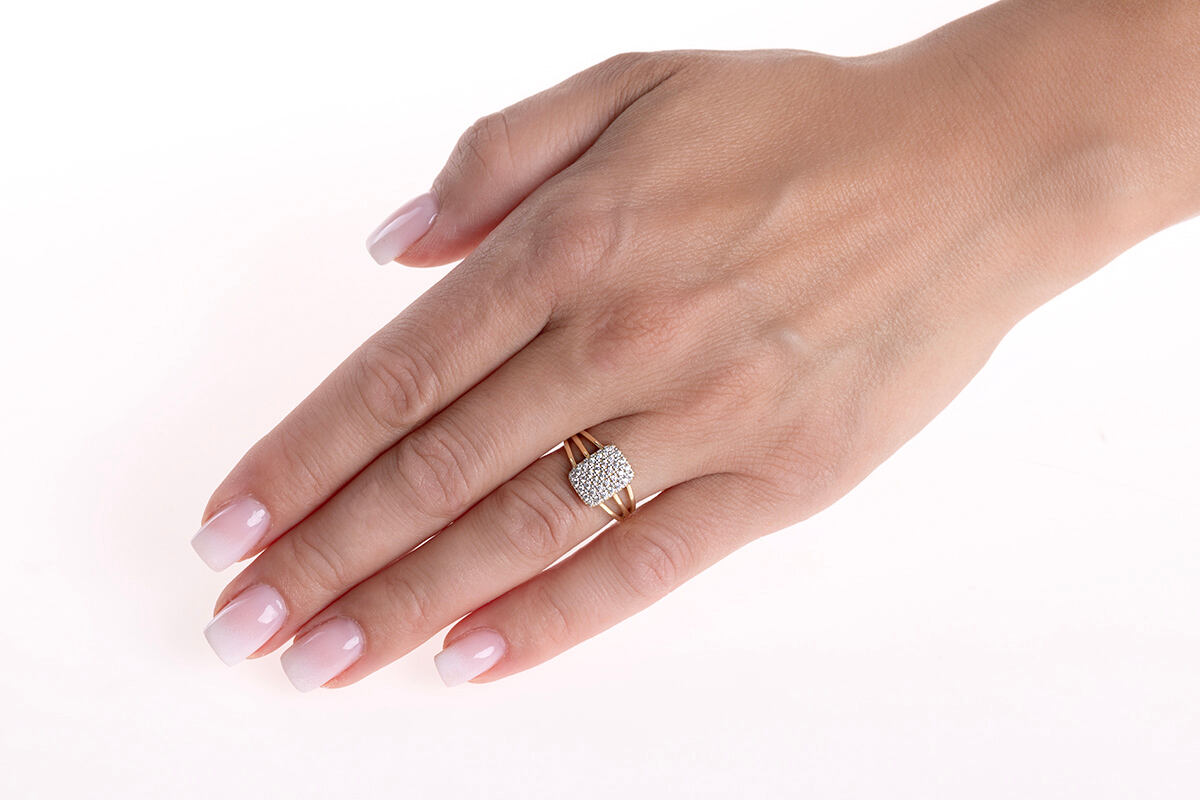 zlatý prsten Kaelyn ze žlutého 14kt zlata v lesklém provedení je skvostně zkrášlen výraznou plochou osázenou průzračnými a výrazně třpytivými zirkony SILVEGO® Brilliance Zirconia. Obdélníkové pole o rozměrech 8,6×11,2 je po bocích usazeno na tři rozvětvující se obroučky, které se následně spojí do jednotlivé obroučky o max. šíři 1,6 mm. Plocha je osázena celkem 35 drobnými SILVEGO® Brilliance Zirconia. Vhodné pro: Každodenní nošení, dárek pro ženu. Materiál: Žluté zlato Au 585/1000 (14 kt). Povrch je leštěný. Prsten má českou puncovní značku pro ryzost zlata: 585. Kámen: SILVEGO® Brilliance Zirconia