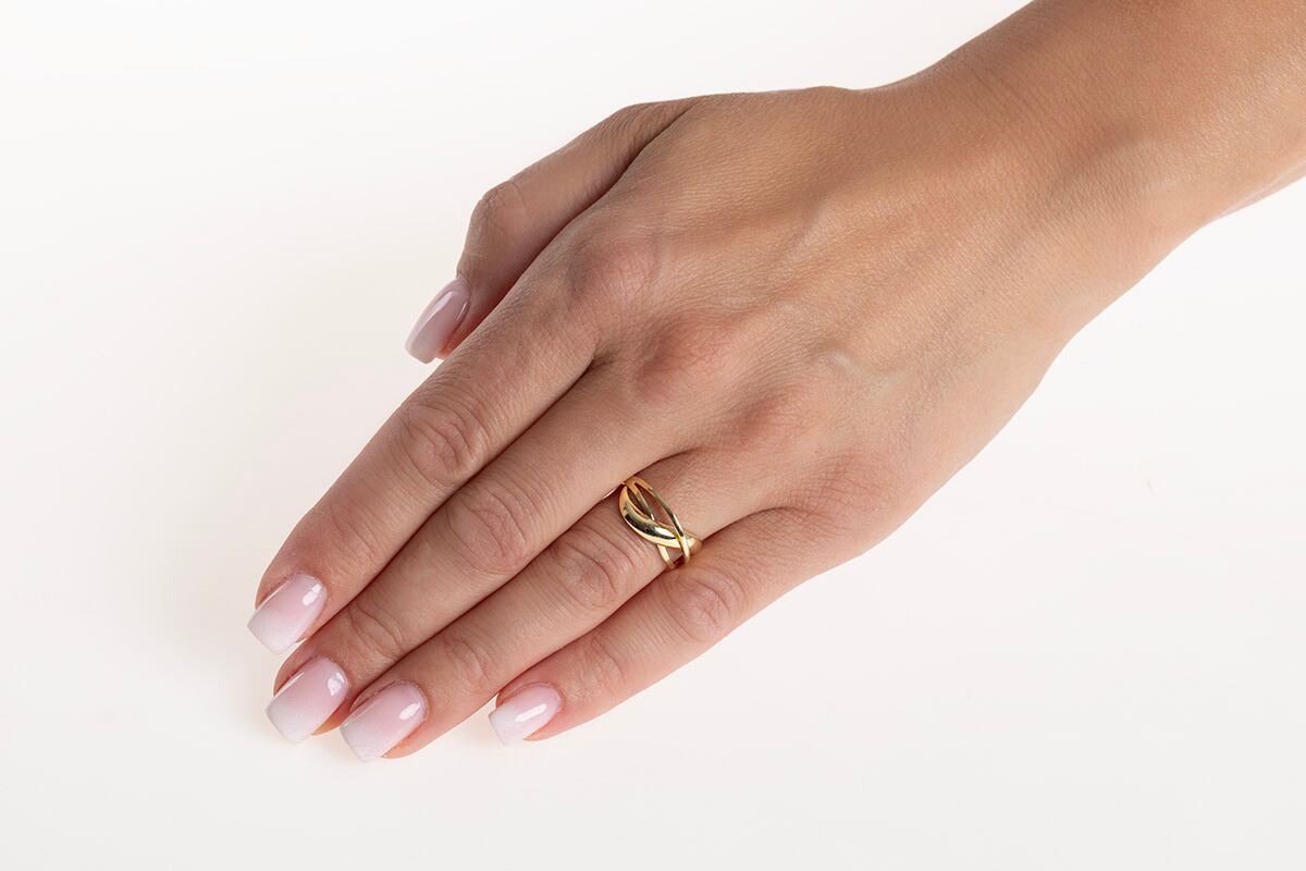 Zlatý prsten Kimmy je vyroben ze žlutého 14kt zlata a působí tak velmi elegantně a minimalisticky. Dámský zlatý prsten o šířce 8 mm (v nejširší části) je designován do třech precizně zpracovaných propletených linií a vytváří tak znak nekonečna. Ideální dárek pro milovníky minimalismu a moderních designů. Šíře prstenu v nejširší části: 8 mm Materiál: Žluté zlato Au 585/1000 (14 kt) Povrch je leštěný. Prsten má českou puncovní značku pro ryzost zlata: 585.