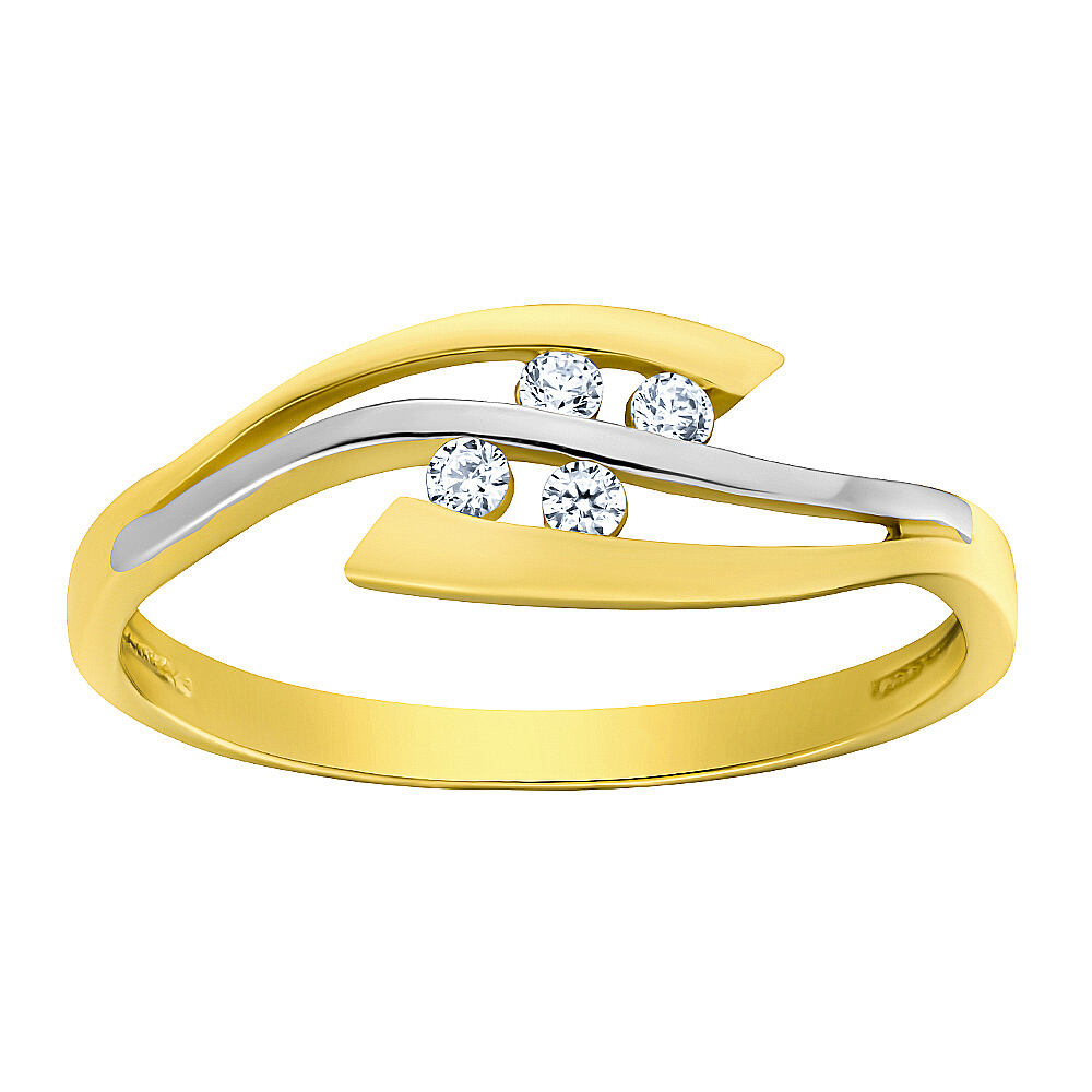 Zlatý prsten Nakoma ze žlutého a bílého zlata s Brilliance Zirconia vyniká moderním a zároveň velmi elegantním designem. Dvě jemně prohnuté linie ze žlutého a bílého zlata se vzájemně prolínají a vytvářejí harmonický celek. Mezi těmito liniemi jsou zasazeny třpytivé kameny Brilliance Zirconia, které dodávají prstenu jemný lesk a zvýrazňují jeho tvar. Kombinace dvou barev zlata působí moderně a zároveň umožňuje snadné kombinování s dalšími šperky. Prsten je ideální pro každodenní nošení i jako elegantní doplněk pro výjimečné příležitosti. Díky svému designu působí lehce, ale zároveň dostatečně výrazně. Materiál: Žluté zlato Au 585/1000 (14 kt) Materiál: Bílé zlato Au 585/1000 (14 kt) Kámen: Brilliance Zirconia Šířka prstenu: 7 mm v nejširším místě a 2 mm v nejužším. Prsten má českou puncovní značku pro ryzost zlata: Au 585