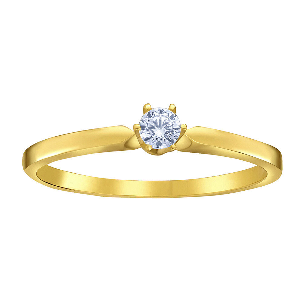 Zlatý prsten Tala ze žlutého 14kt zlata v lesklém provedení působí velmi elegantně. Hlavní obroučka prstenu je na jeho přední straně zúžena do tvaru šipek, mezi kterými je ukotven třpytivý SILVEGO® Brilliance Zirconia. Okouzlující prsten vhodný i pro žádost o ruku. Tímto prstenem svou milou skvěle překvapíte při výjimečných příležitostech, jako jsou třeba zásnuby, vyročí svatby a další mimořádné události. Navíc díky 14kt zlatu, ze kterého je šperk vyroben, si prsten zachovává svojí dlouhotrvající vysokou hodnotu. Vhodné pro každodenní nošení nebo jako zásnubní prsten či dárek pro ženu. Rozměr kamene: 3 mm Kámen: SILVEGO® Brilliance Zirconia Materiál: žluté zlato Au 585/1000 (14 kt). Povrch je leštěný. Prsten má českou puncovní značku pro ryzost zlata: 585.