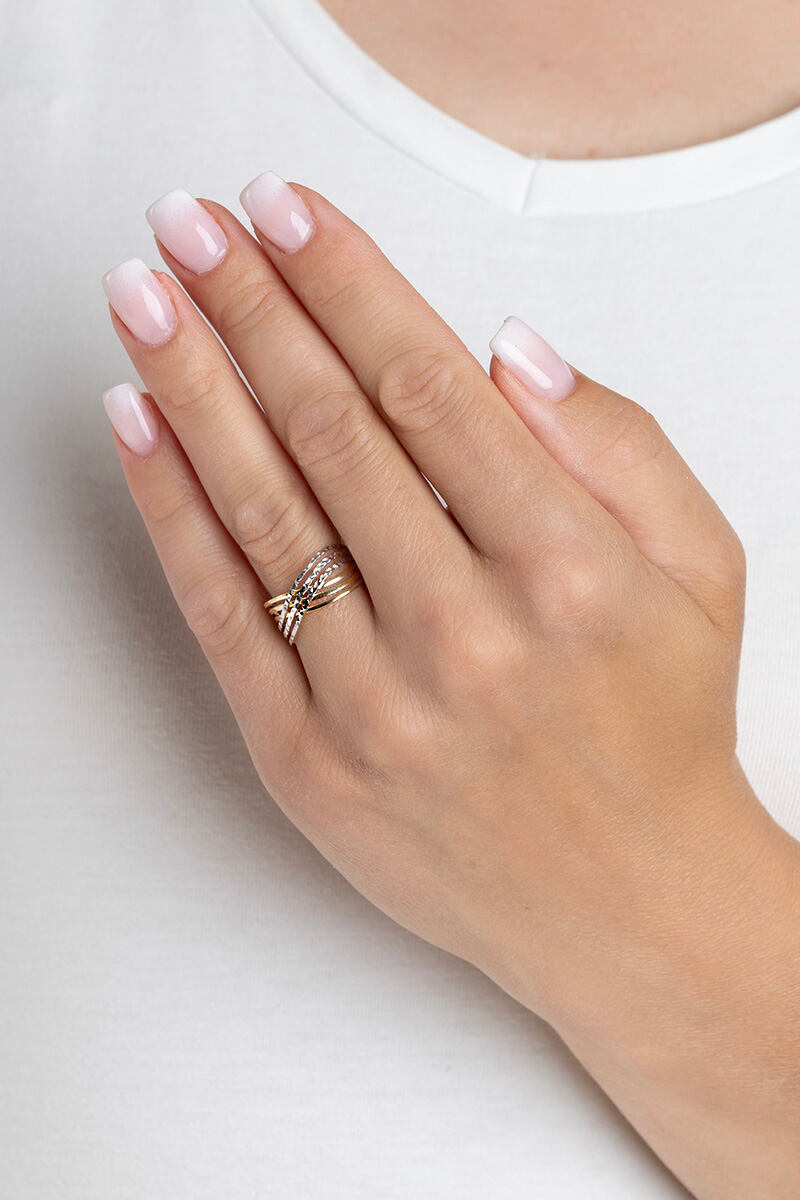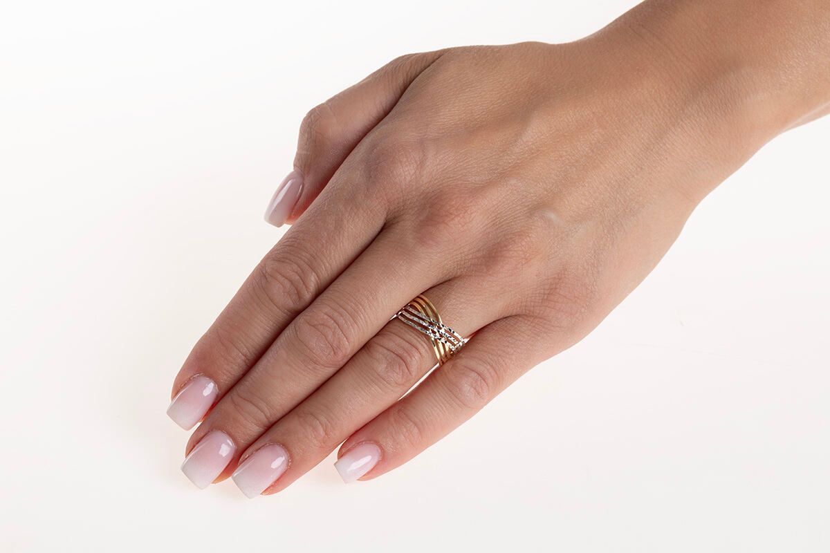 prsten Vortena je ztělesněním pohybu, elegance a třpytu. Precizně zpracované linie ze žlutého a bílého zlata se vzájemně proplétají v harmonické vlně, která působí lehce a přitom velmi výrazně. Tři proužky z bílého zlata s diamantovým výbrusem dodávají šperku jemnou jiskru a optickou dynamiku. Název Vortena je inspirován latinským slovem vortex, evokující energii, eleganci a spojení protikladů. Tento prsten je ideální volbou pro moderní ženu, která miluje originalitu, ale zároveň hledá šperk s trvalou hodnotou a lehkým šarmem. Materiál: 14kt žluté a bílé zlato (585/1000) Ryzost: 585/1000 Povrchová úprava: vysoký lesk a diamantové rytí Šíře prstenu: 9 mm v nejširším místě a 1,6 mm v nejužším Prsten má českou puncovní značku pro ryzost zlata: Au 585
